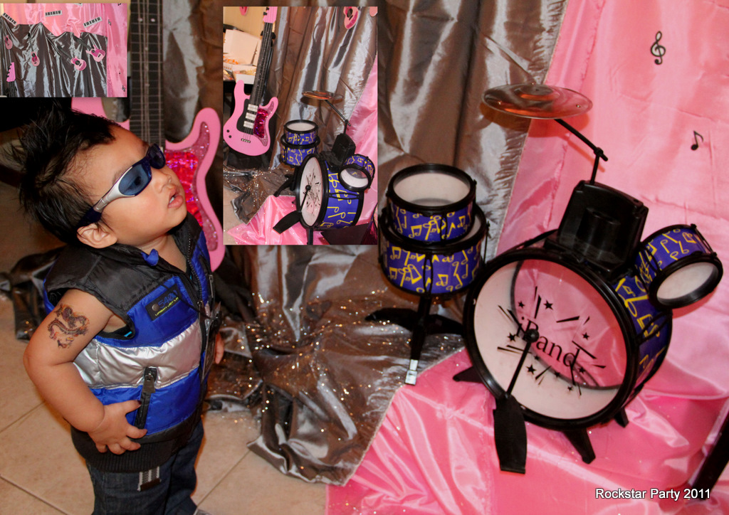 April 1, start of April fool's day when we set up this double celebration of two sisters here in Muscat , Nea whose turning one and Iyah who turned 6. The concept was very challenging to us, it was extremely very complicated having this black / pink for guitars and drums combined with pastel colors for flowers and butterflies.